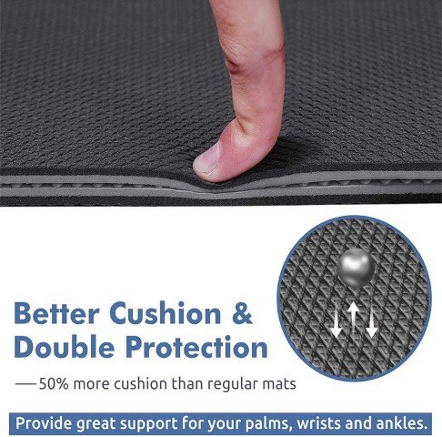 - Premium Cushioning Performance: Practice on an exercise mat that will deliver comfort and keep you supported in every pose. With high density TPE material, Ewedoos 1/4 inch fitness mat is an optimal combination of Cushion and Stability. NO MORE SORE KNEES AND ELBOWS.